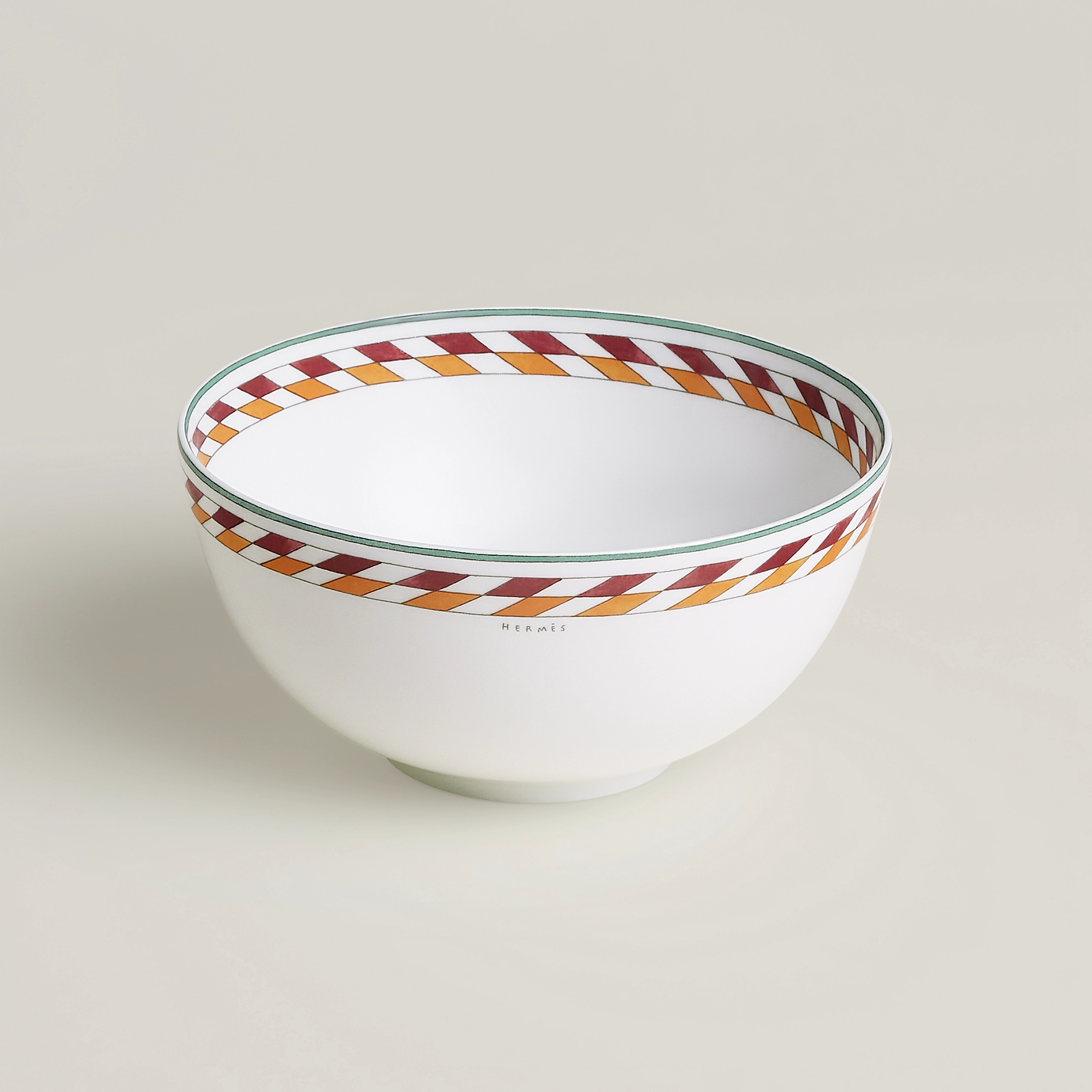 Ciotola in porcellana Decorazioni cromolitografiche applicate a mano sulla porcellana Il servizio Hermès en Contrepoint è un invito a giocare con gli abbinamenti e le sovrapposizioni. I fregi colorati decorano i 33 pezzi del servizio per il pranzo, la cena e il tè o il caffè.