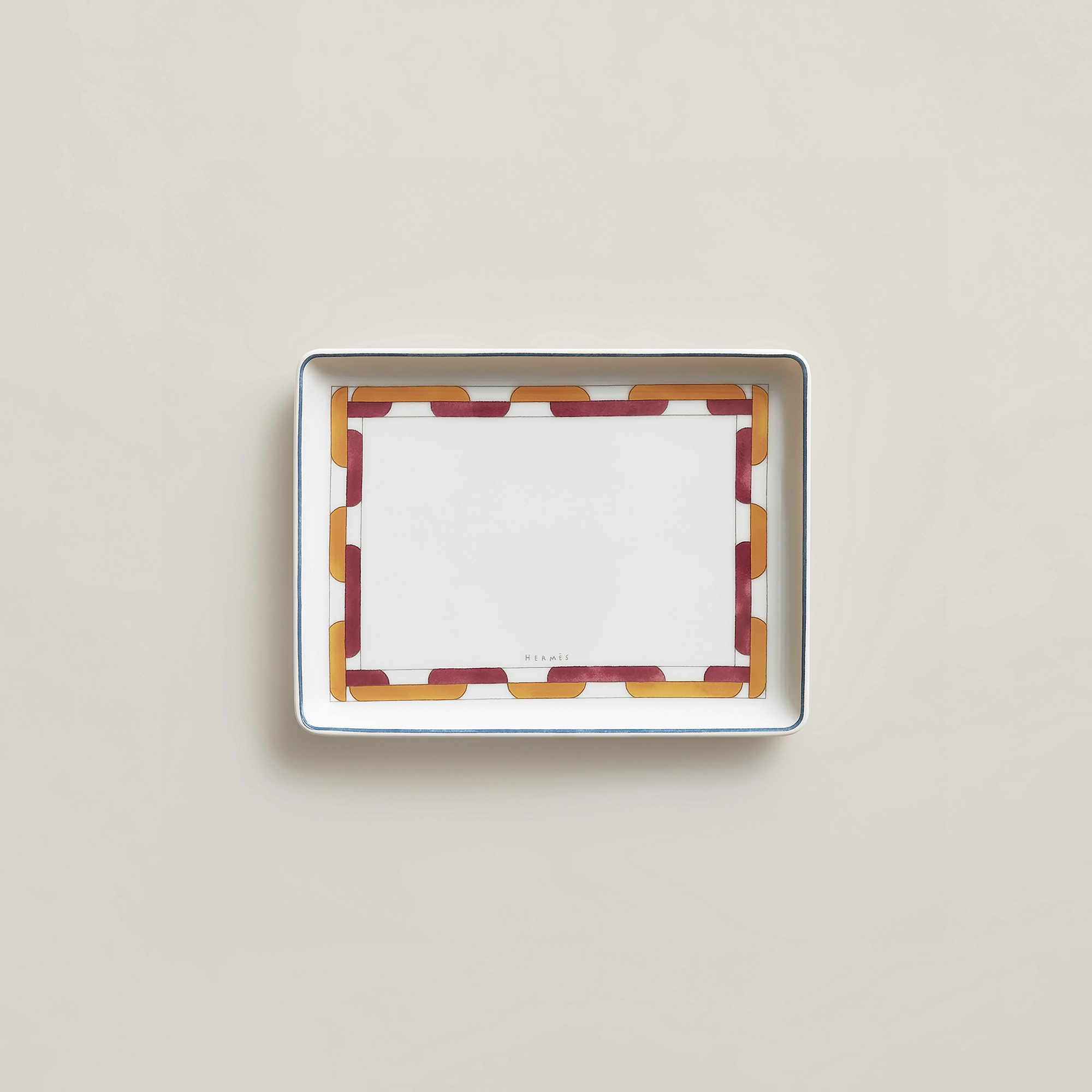 Decorazioni cromolitografiche applicate a mano sulla porcellana Il servizio Hermès en Contrepoint è un invito a giocare con gli abbinamenti e le sovrapposizioni. I fregi colorati decorano i 33 pezzi del servizio per il pranzo, la cena e il tè o il caffè.Fabbricato in Francia