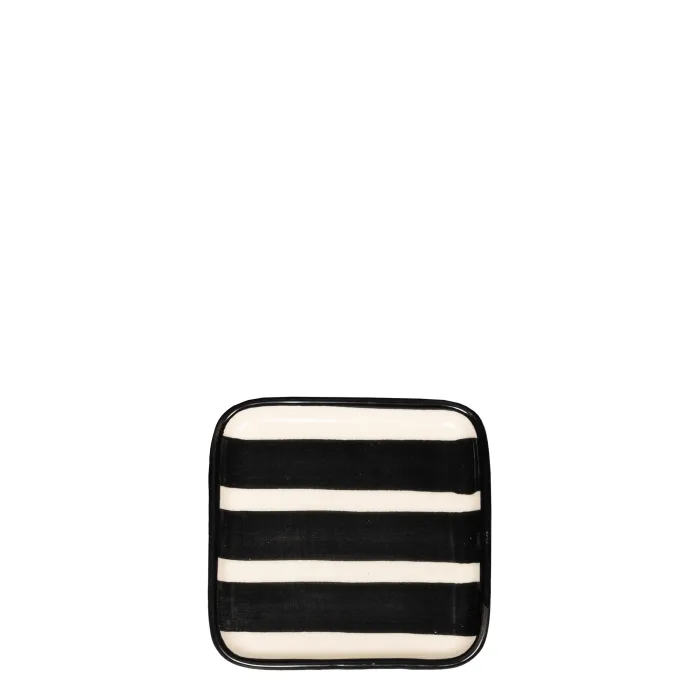 Questo set da 2 piattini quadrati è decorato con eleganti righe nei colori nero oppure sabbia, perfetti per aggiungere un tocco di stile alla tua tavola. Il design semplice ma raffinato li rende ideali per servire antipasti, dessert o piccoli contorni. Realizzati in ceramica Made in Italy a Civita Castellana, dpinti a mano, questi piatti combinano funzionalità e estetica, garantendo durata e resistenza. Ideali per chi cerca un complemento versatile e di classe per la propria cucina.